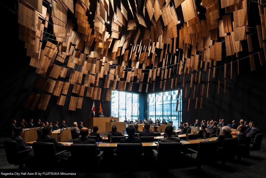 Tòa Thị Chính Aore được thiết kế bởi Kengo Kuma, 1 kiến trúc sư luôn mang mong muốn tạo ra những tác phẩm thu hút ánh nhìn. Và để làm được điều đó, Kuma đã tập trung vào vẻ ngoài của cổng ra vào đầu tiên. Lấy cảm hứng từ kiến trúc nhà cổ Nhật Bản, ông đã tạo ra 1 doma (kanji có nghĩa là